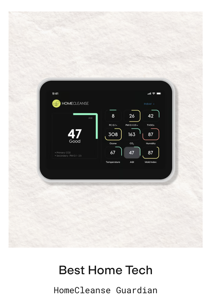The HomeCleanse Guardian, a 24/7 indoor air quality security system, wins the 2026 Popsugar award for best new home tech!