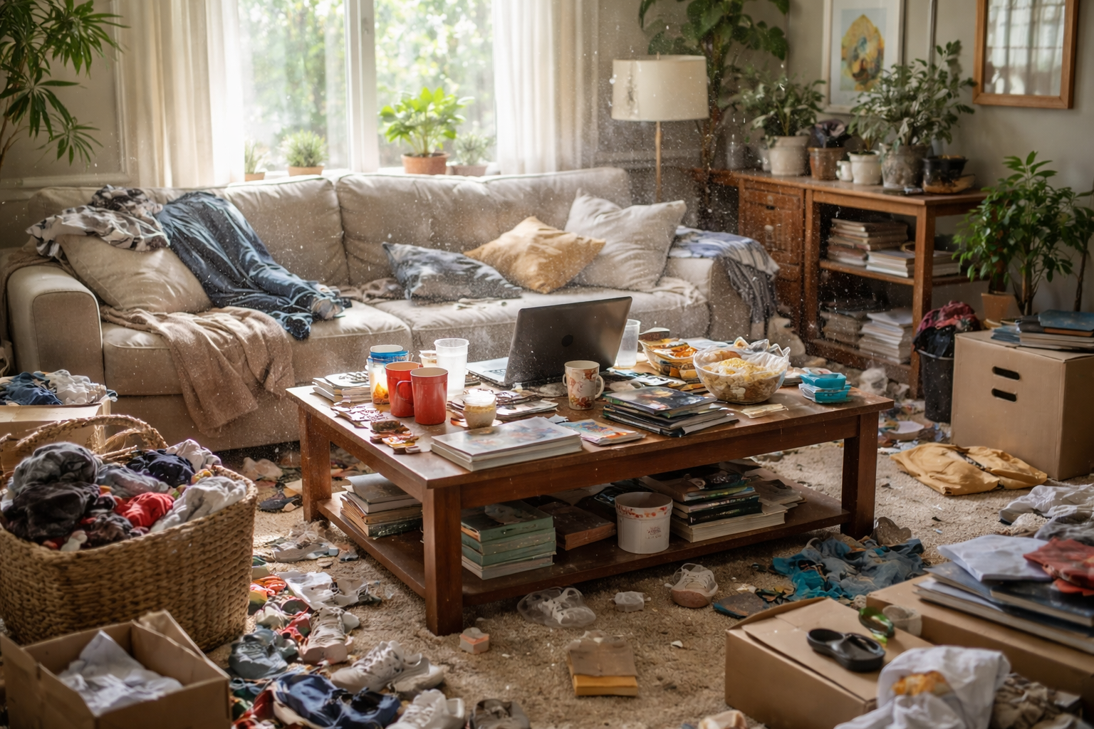 Stacks of paper, crowded shelving, overfilled closets, and packed corners act as dust storage zones. Every time airflow shifts, whether from walking through a room or your HVAC system cycling on, fine particulates can re-enter the breathing zone.